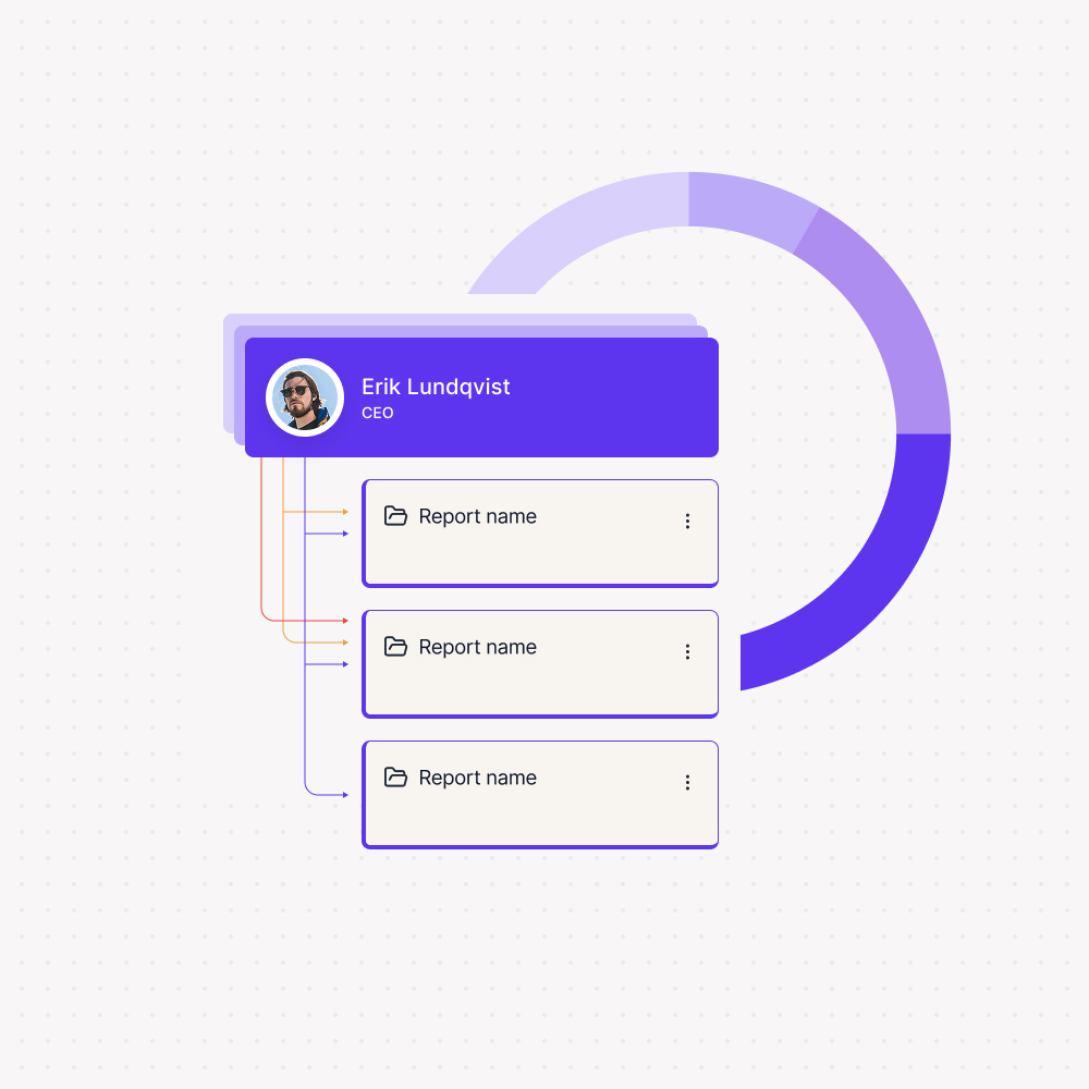 Publish once and deliver a professional branded experience to everyone. Organize reports into collections by customer, product, or team with role-based views. The white-labeled portal uses your logo, colors, and custom domain. Add users or reports anytime without changing your Power BI setup.